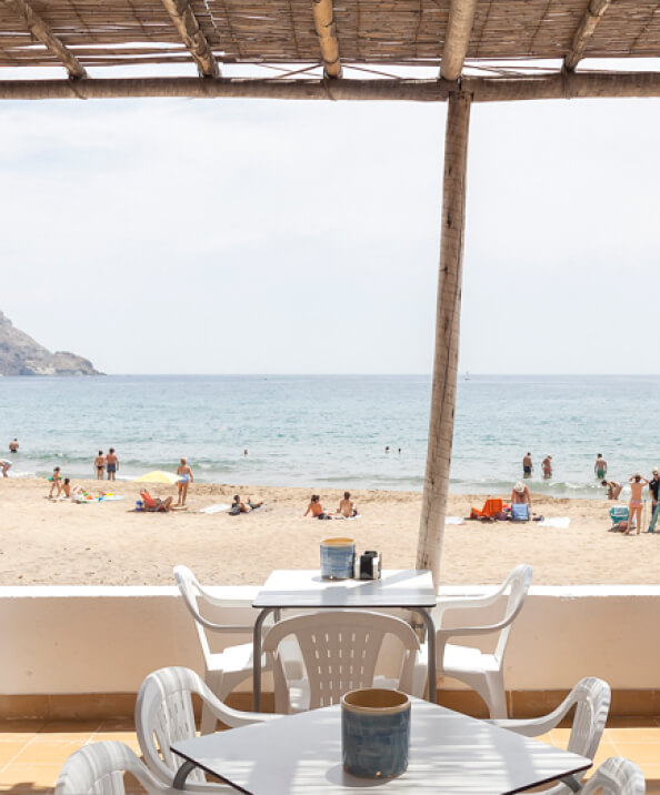 El Chiringuito Dña Pakyta, ubicado a pie de playa, dispone de acceso directo desde el Hotel Dña Pakyta mediante unas escaleras privadas hacia la playa.